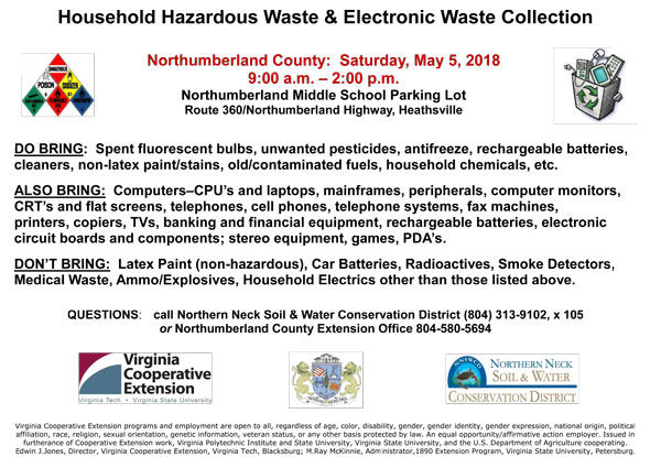 QUESTIONS: call Northern Neck Soil & Water Conservation District (804) 313-9102, x 105 or Northumberland County Extension Office 804-580-5694